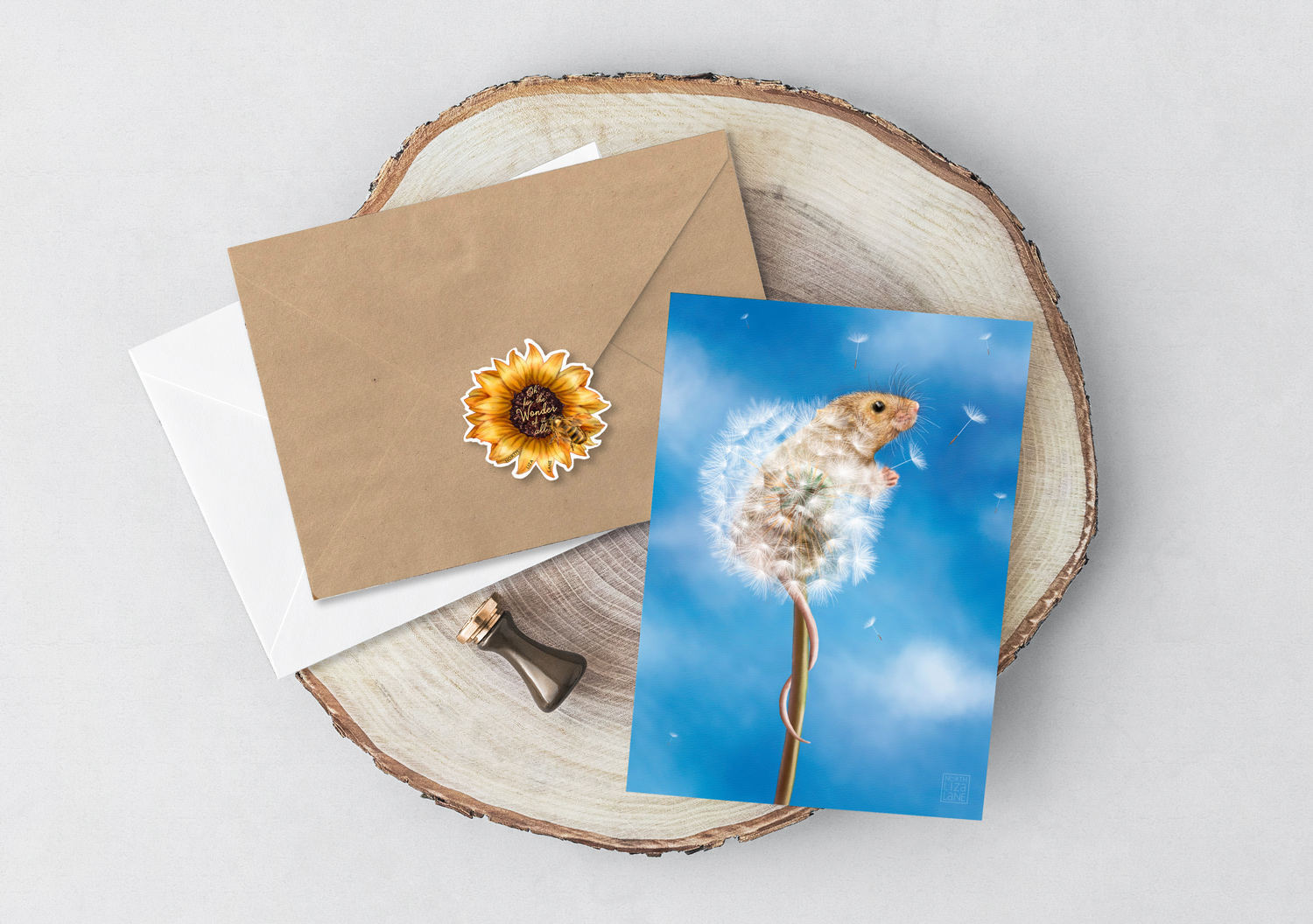 Send your own delightful hello, I miss you, a simple note, a thank you, support, or wishing you joy. This art and card is perfect for all ages with imagination. Share the love.